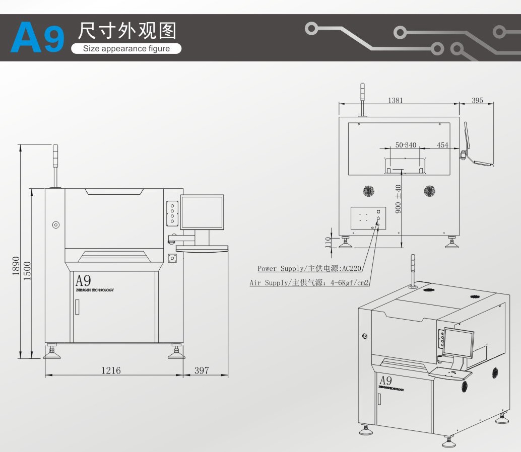 機器外形尺寸 | 1220(L)X1355(W)X1500(H)mm | |